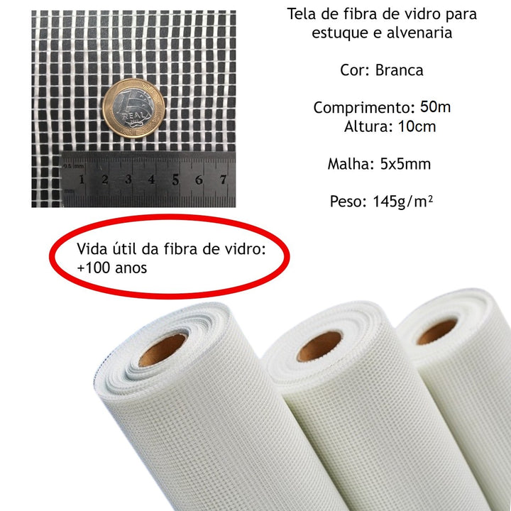 Tela Fibra Vidro Impermeabilização Rodapé 50m x 10cm (5m2)