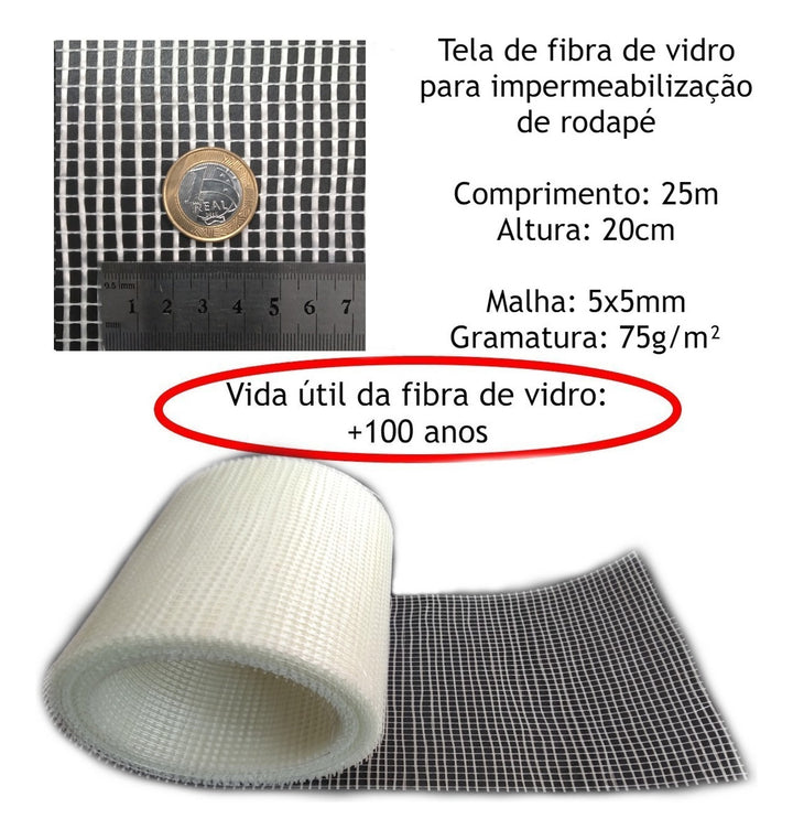 Tela Fibra Vidro Leve Impermeabilização 20cmx25m (5m2)