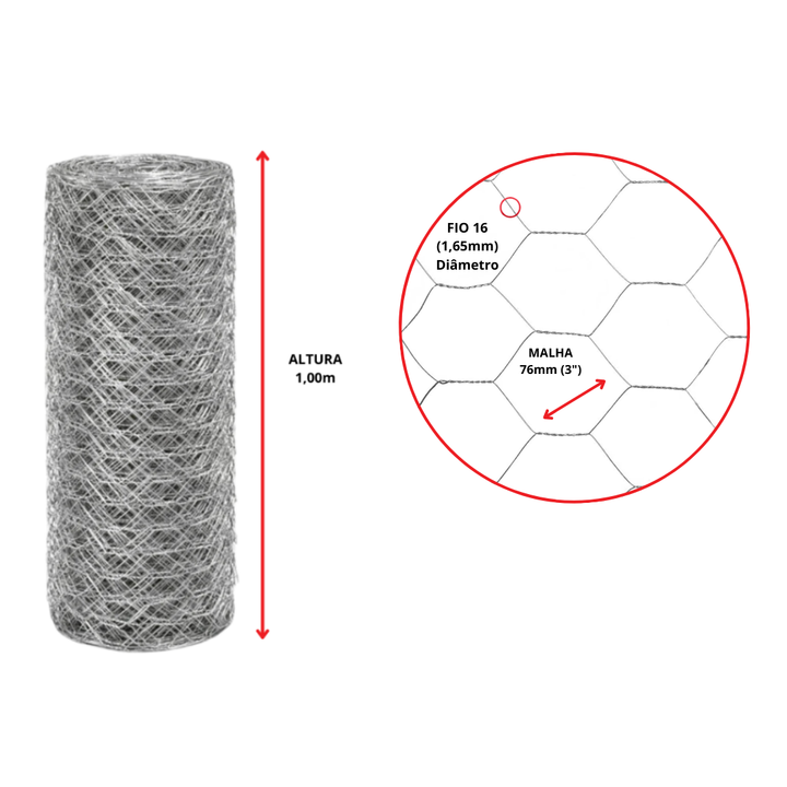 TELA HEXAGONAL MANGUEIRÃO 3" (76mm) FIO 16 BWG (1,65mm)