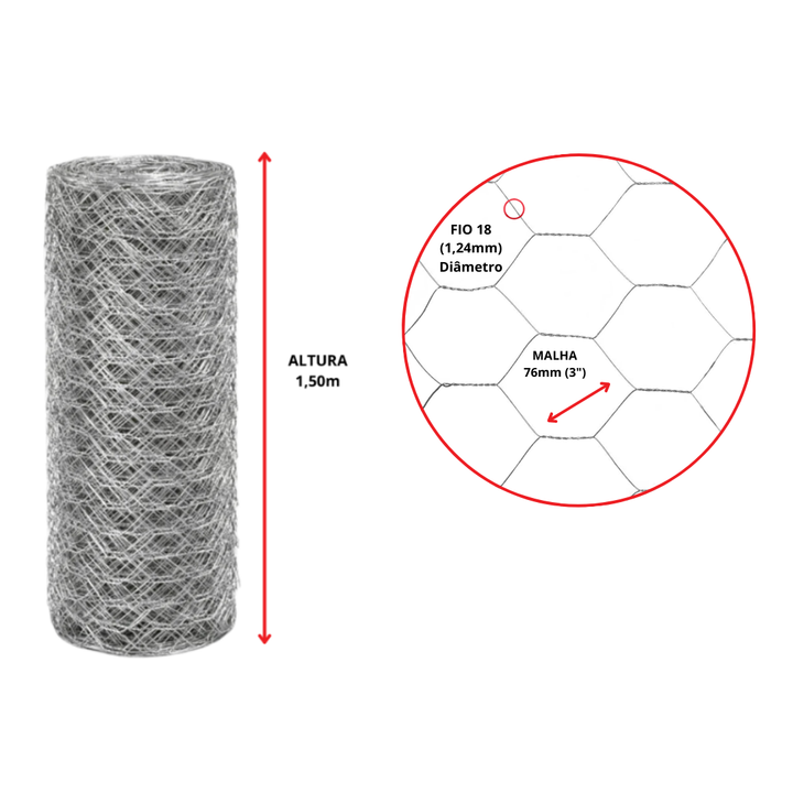 Tela Hexagonal Mangueirao Fio 18 - 50 X 1,50m