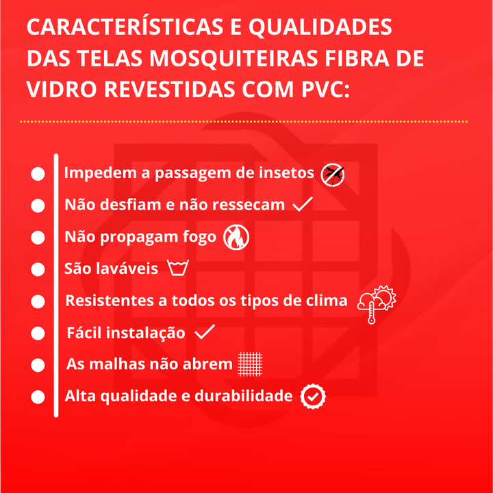 Medidas da Tela Mosquiteiro Fibra de Vidro revestida em PVC: