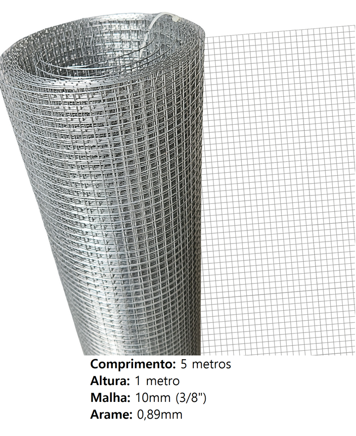 TELA SOLDADA GALVANIZADA MALHA FECHADA 10mm (3/8")