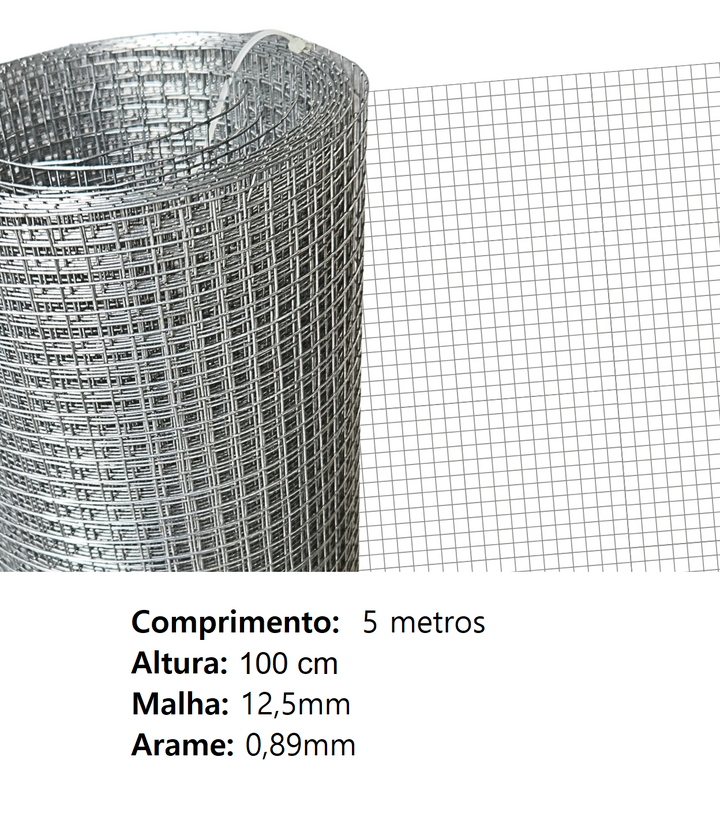 Tela Soldada Galvanizada 12,5mm Pets Jardim Portões 5x1,00m