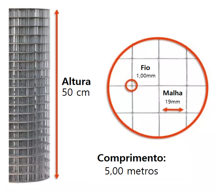 Tela Soldada Galvanizada 19mm Portões Pets Jardim 5m X 0,50m