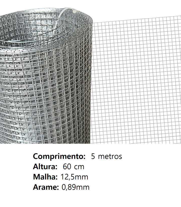 Tela Soldada Malha 12,5mm Portões Pets Jardim 5m X 0,60m