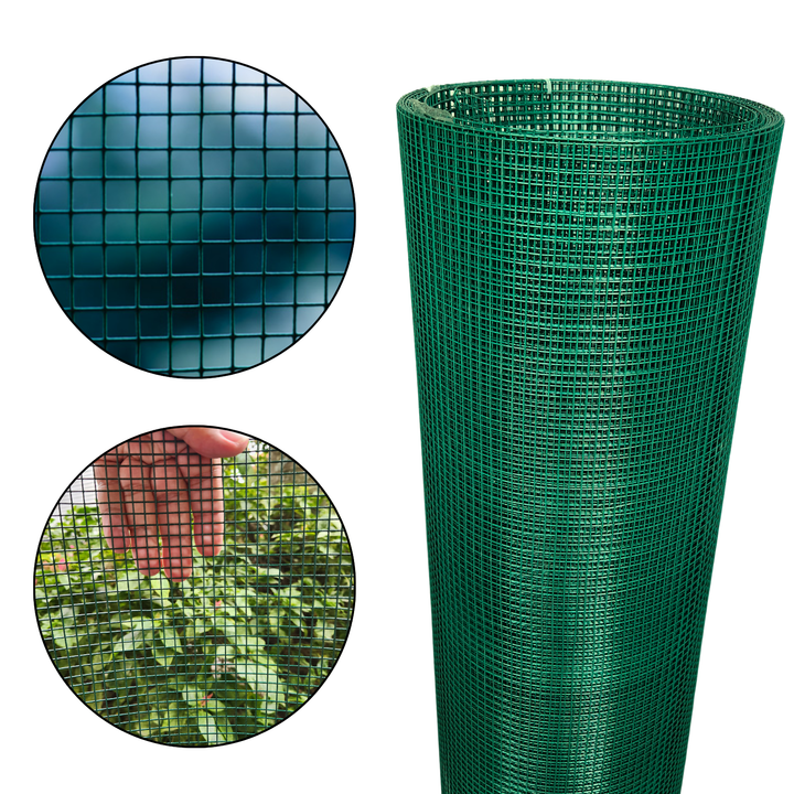 Essas telas soldadas de aço revestidas em PVC na cor verde podem ser instaladas em portões para evitar a passagem de animais de estimação (especialmente cachorros), podendo também ser aplicadas em jardins.
