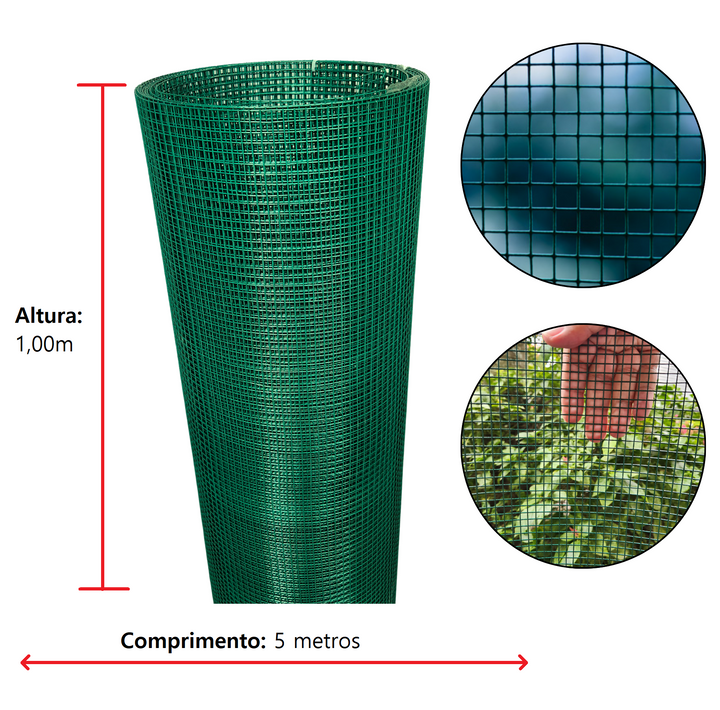 Tela Soldada Revestida PVC 6,35mm Jardim Pets 5,00m X 1,00m