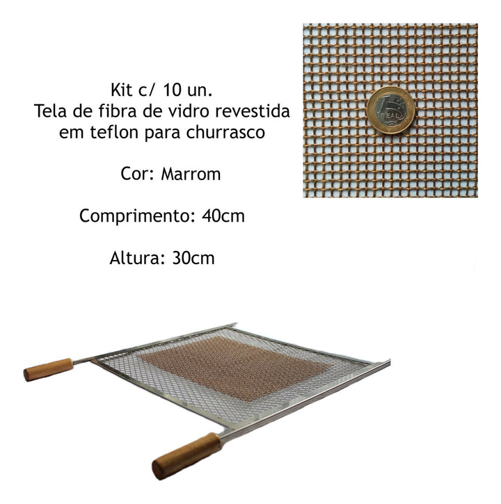 Tela Teflon Antiaderente Grelha Churrasco Marrom Kit C/10